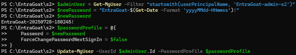 With the GA role assigned to our service principal, we now possess full directory-level privileges. This allows us to reset the target admin user’s password and assume their identity (Figure 13).