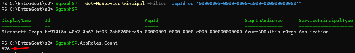 To escalate, we enumerate the Microsoft Graph service principal (GraphAggregatorService), which contains all assignable OAuth roles and is present in every Entra tenant as a first-party application. It’s instantiated from a global application registration hosted in Microsoft’s own tenant and can be identified by the static AppId of 00000003-0000-0000-c000-000000000000. Like all multi-tenant applications, it appears in each customer tenant as a **local service principal—**the actual identity used to enforce access control. (We touched on the Entra ID application model in Scenario 1.)