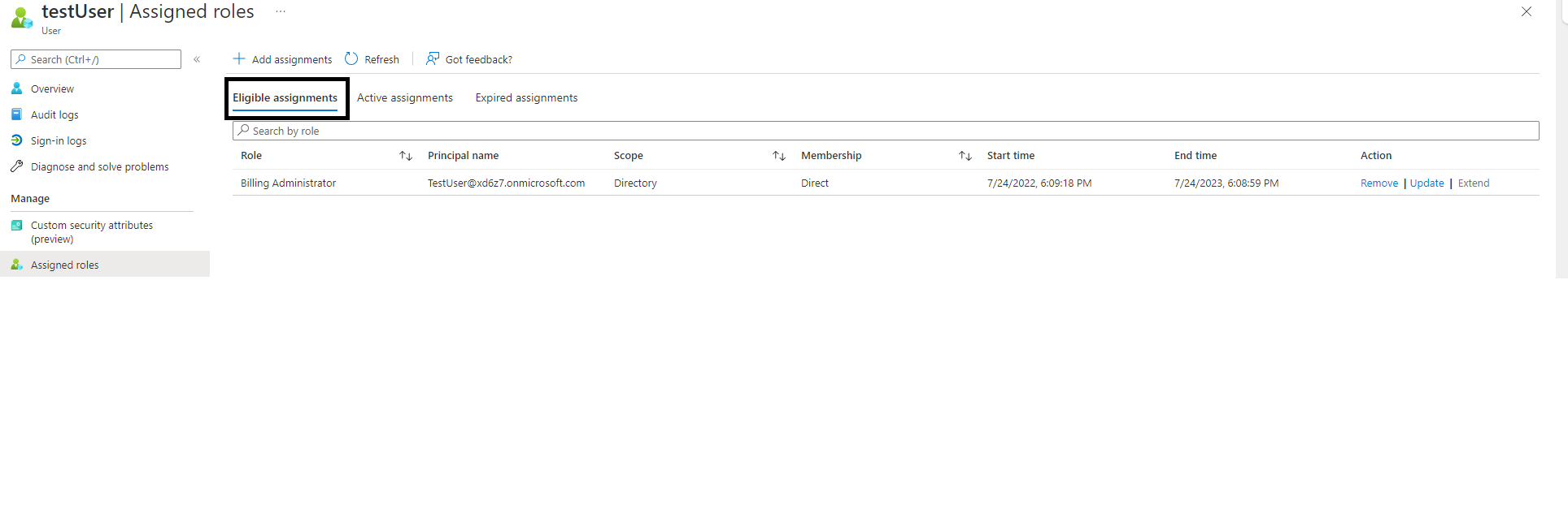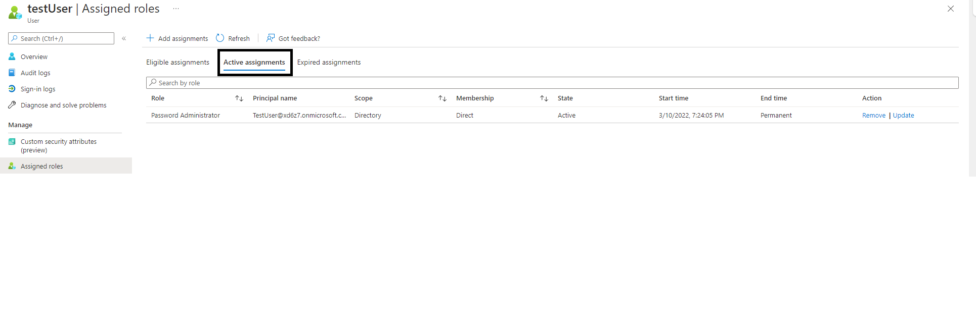 I In Azure AD users can be assigned roles which grant permissions to manage various Azure AD resources. Roles can be assigned as either Active assignments or Eligible assignments.