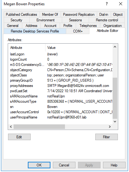 For example, we will try to synchronize the following user using proxyAddress Attribute but with different UPN, which will result in a new AAD user without having any cloud access or permissions: