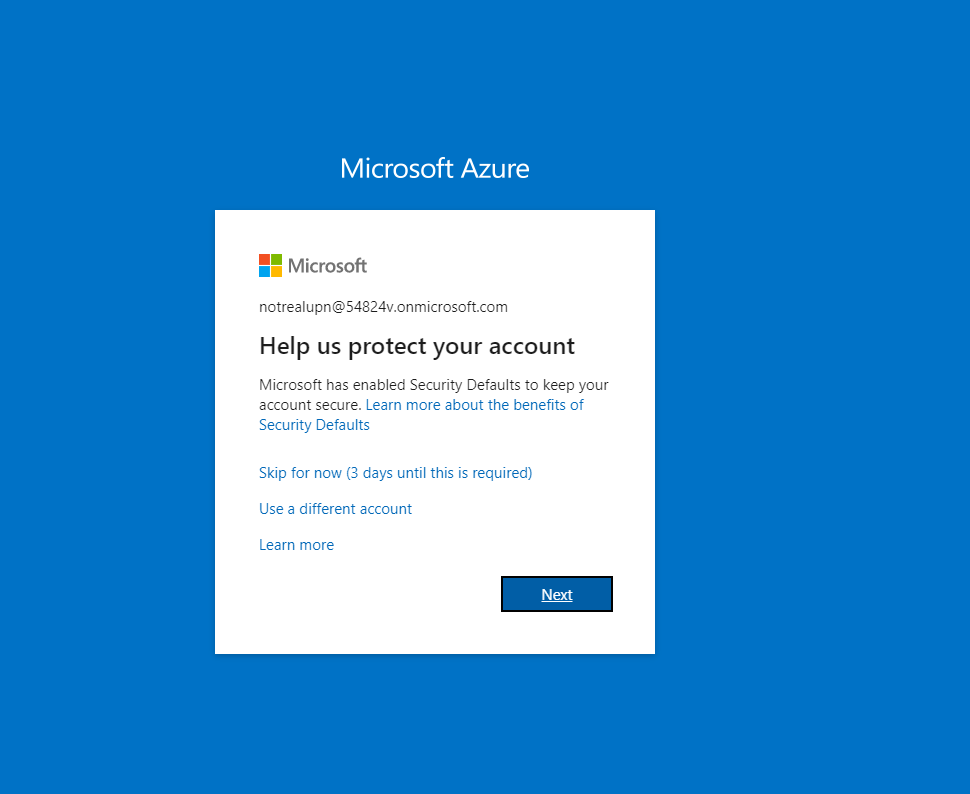 We can now login with the new cloud user that we created and the on-prem password and configure MFA: