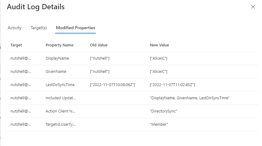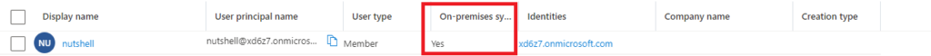 Now, the AliceIC on-prem AD account is synchronized to the nutshell Entra ID account. Because Entra Connect uses password hash synchronization by default, the AliceIC password and DisplayName attribute are also synchronized to the nutshell Entra ID account.