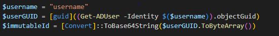 If the mS-DS-ConsistencyGuid attribute is unpopulated, Entra Connect writes the user’s objectGUID to that attribute. The corresponding value on the Entra ID object is ImmutableID (the base64-encoded objectGUID). Figure 1 shows an example of hard matching: getting the ImmutableID of an Entra ID object from the on-prem AD user’s objectGUID.
