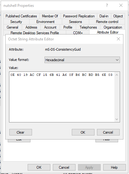 Next, the attacker copies the value of the nutshell mS-DS-ConsistencyGuid attribute into the AliceIC mS-DS-ConsistencyGuid attribute (Figure 6).